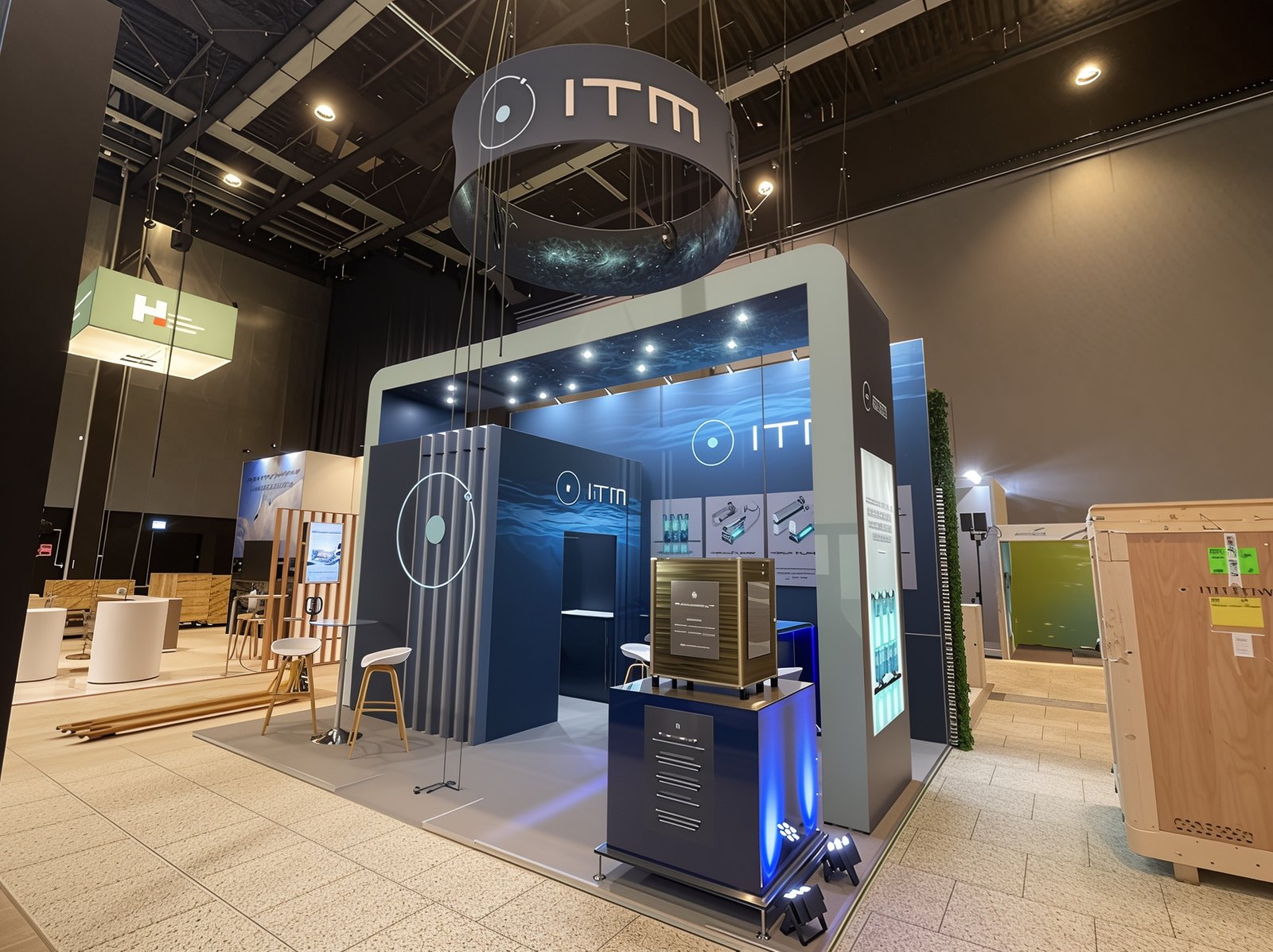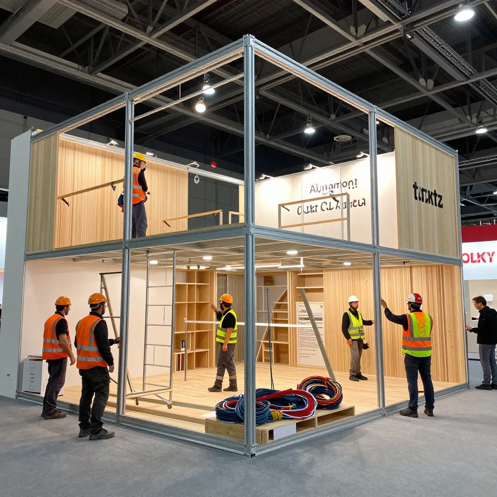 Booth construction, temporary structures, spatial setup, on-site installation and dismantling.